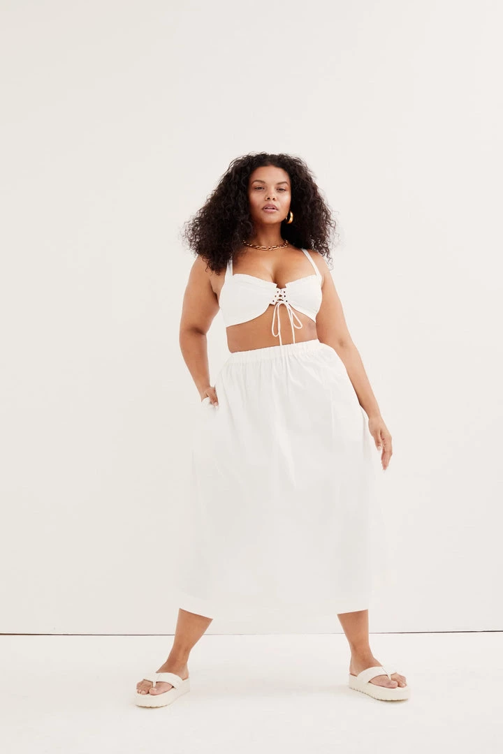 Dreamy poplin midi skirt featuring side pockets. Made from LENZINGâ„¢ ECOVEROâ„¢fibers.