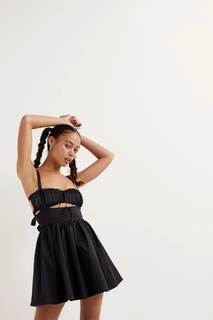 Picnic-ready poplin mini dress featuring a layered-in bra top. Delicate ties at back, made from LENZINGâ„¢ ECOVEROâ„¢fibers.