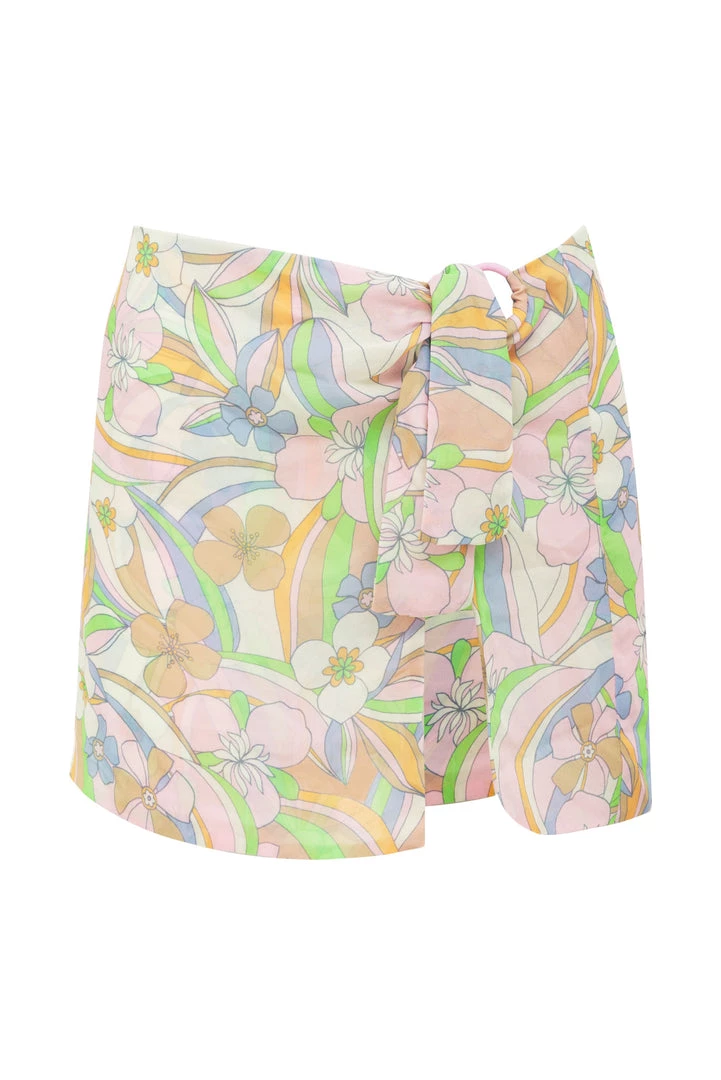 Our best selling mini cover up, now in a soft pastel 70s-inspired print. Features a long side sash and vintage-inspired circular hardware. This sarong matches back to the Guinevere Mini, Maxi and Top coming soon!
