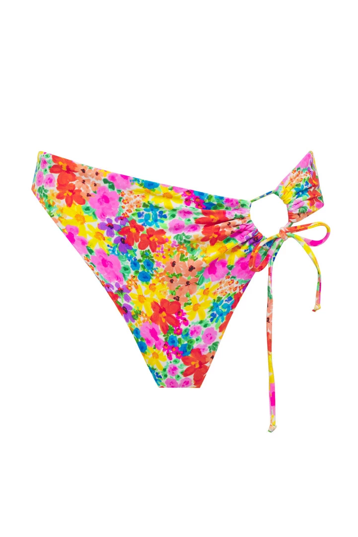 Vibrant high-waist bikini bottom featuring a neon watercolor print and delicate side drawstrings.Â