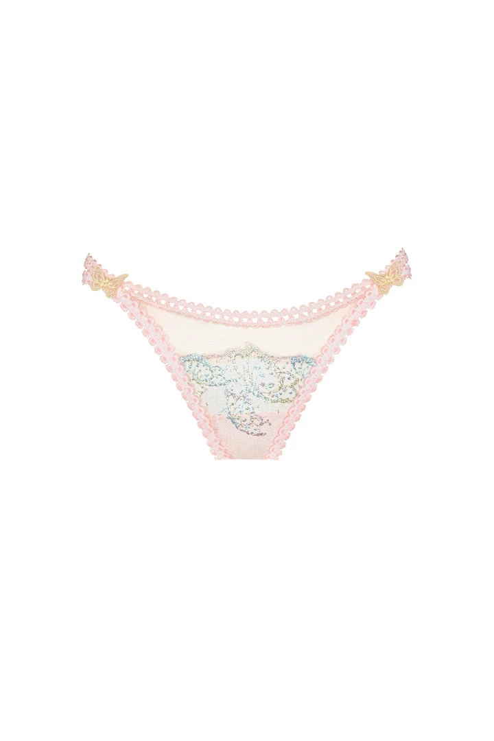 This enchanting g-string will give you butterflies. Iridescent winged embroidery and lace appliqués lend a fairytale romance to the double-strap style. Pair with the matching bra.