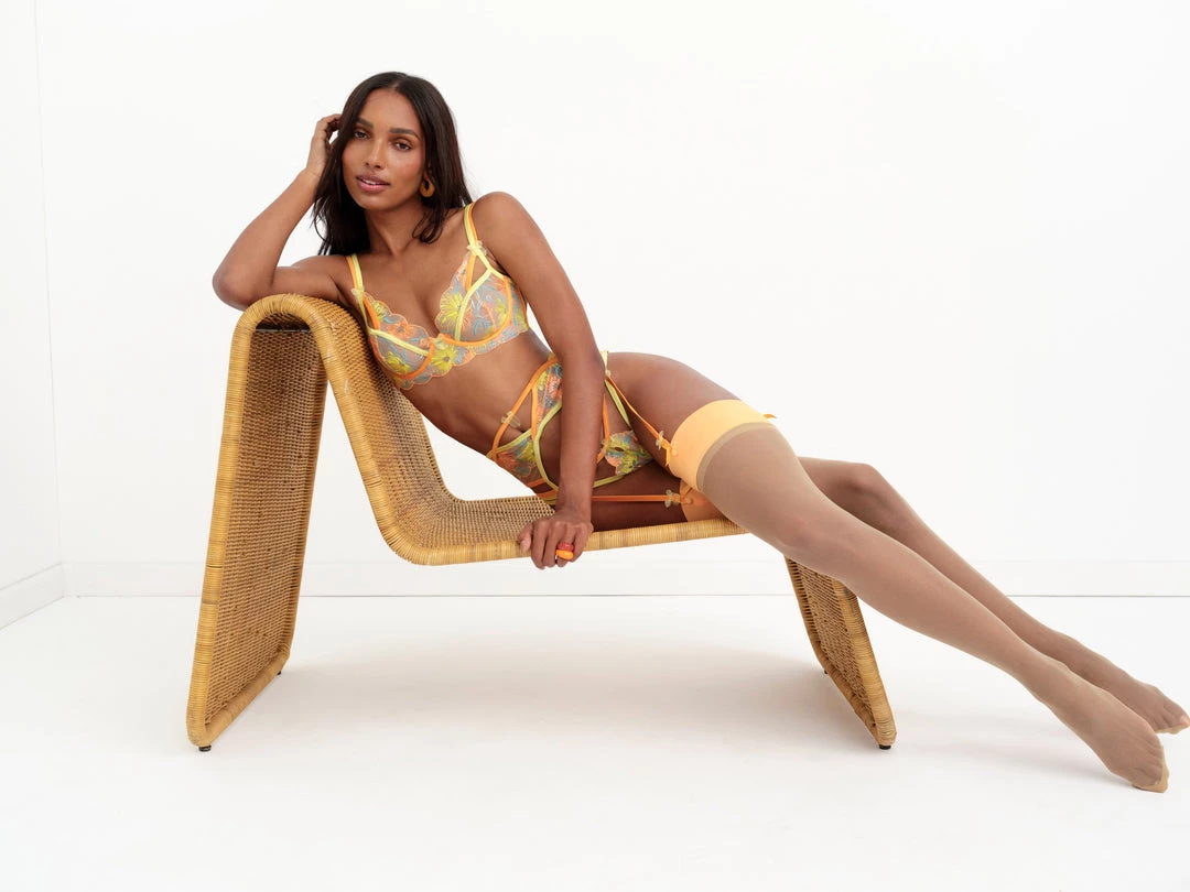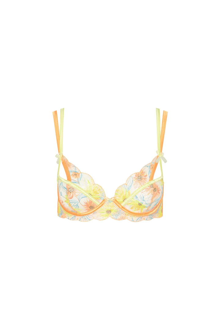 Channel your inner impressionist in an exquisite demi featuring floral embroidery that evokes lush water lilies in soft neons.Decorated with scalloped trim along the cups and band. Pair with the matching panty for all-out romance.
